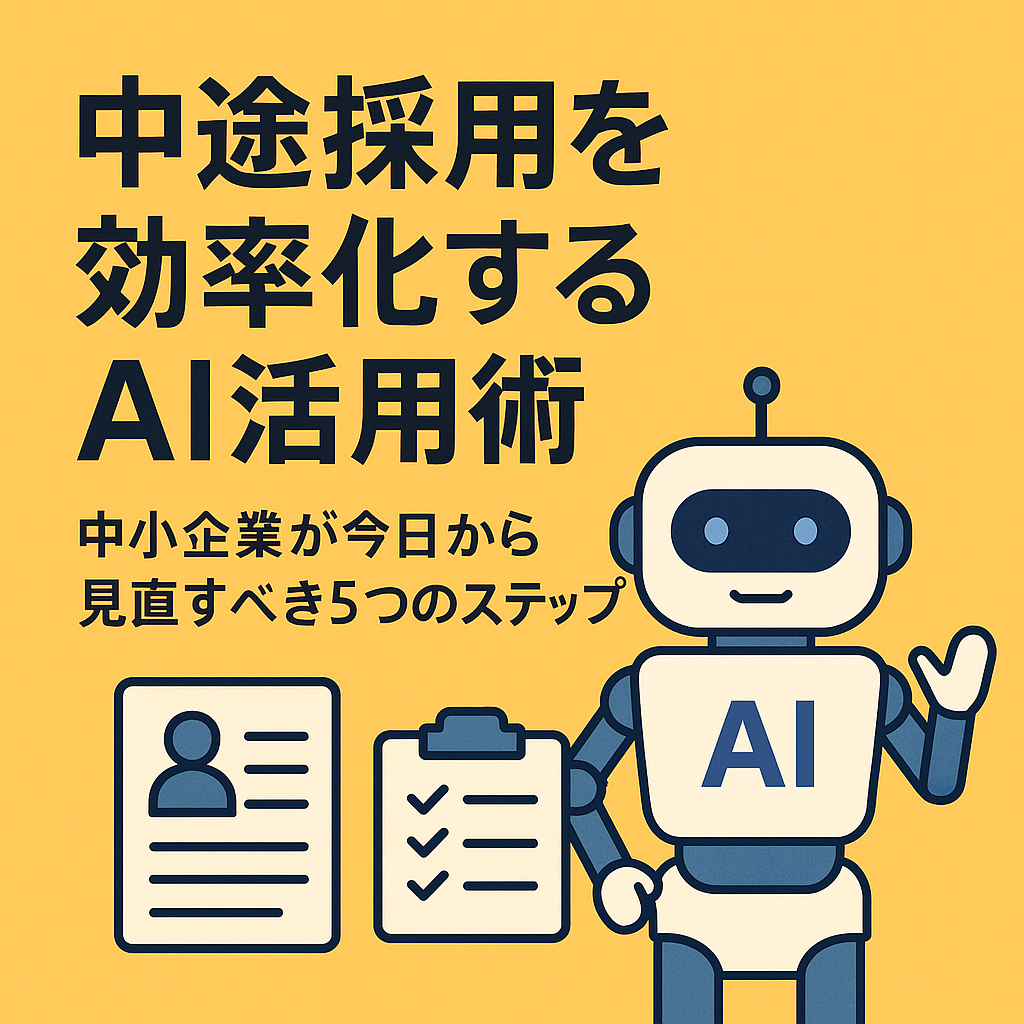中小企業やスタートアップの人事・経営層にとって、中途採用は「時間がかかる」「担当者の経験に左右される」「面接の質がバラつく」といった悩みがつきものです。本記事では、こうした課題を整理しながら、AIを活用して中途採用を効率化するための具体的なステップを紹介します。読み終える頃には、自社の採用フローをどこから見直せばよいのかが明確になり、明日から動き出せるイメージが持てるはずです。