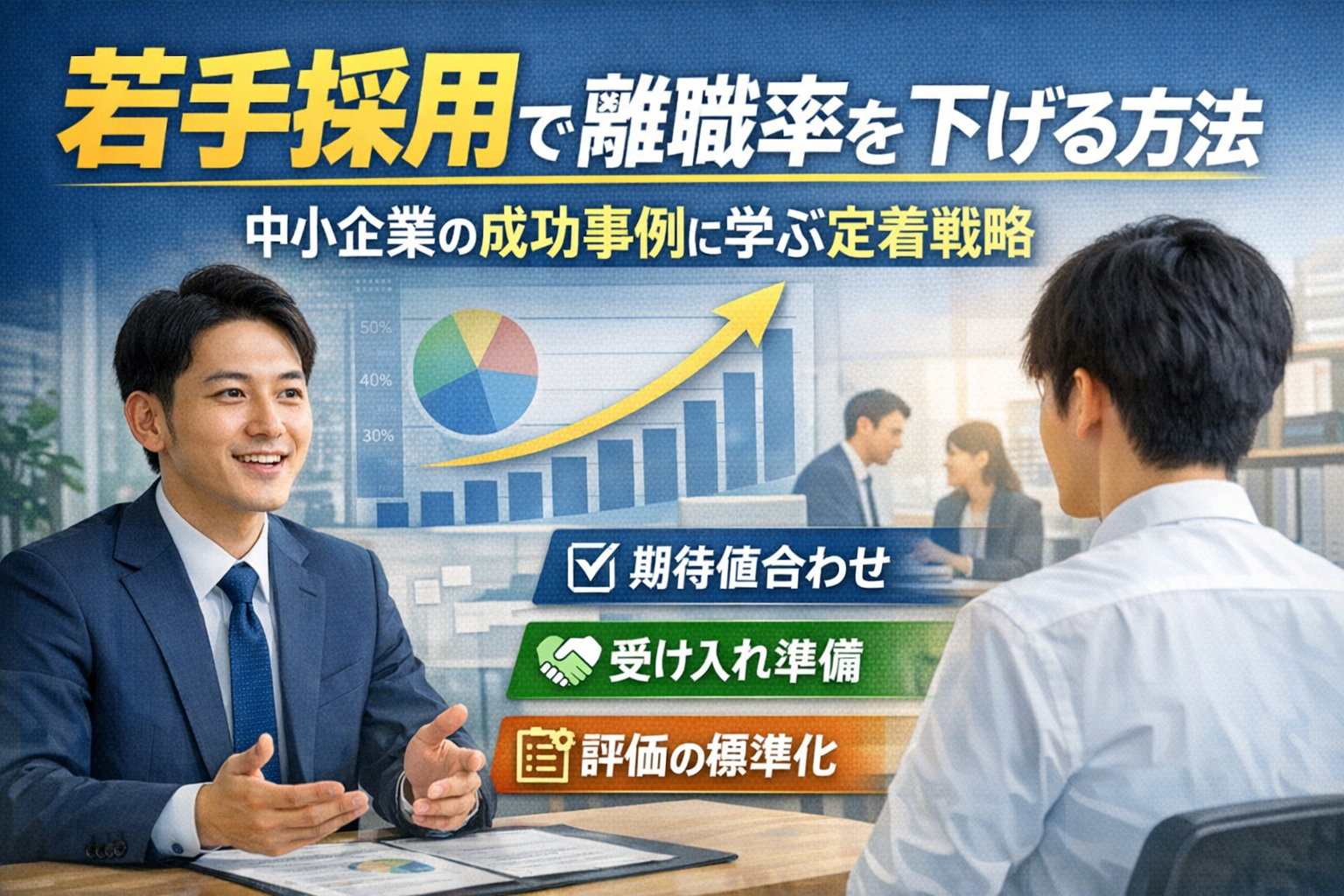 本記事では「若手採用×離職率」の論点を整理し、実際に改善した企業の事例パターンと再現しやすい打ち手をまとめます。